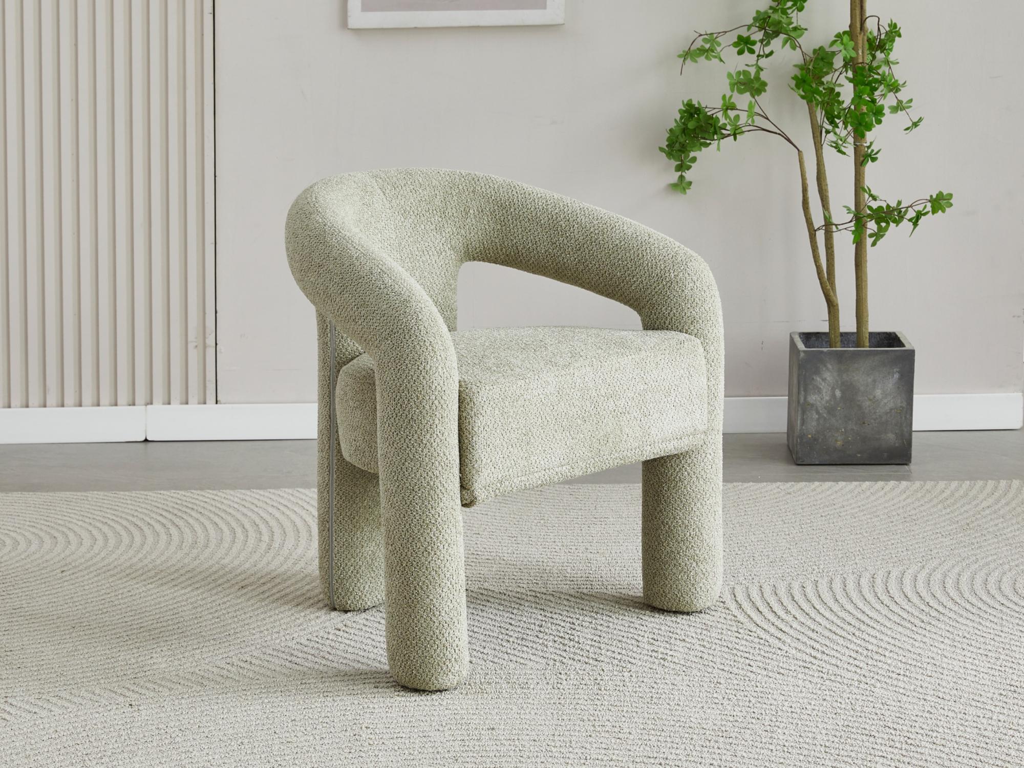 The Alba armchair is the perfect piece of furniture to complete any room. With a modern, sophisticated shape it complements and provides a beautiful accent to most exisiting decor. This chair is upholstered in a mint green hue plush boucle textured fabric. Its curved back and plush seat offer exceptional comfort, making it a refreshing addition to living spaces and bedroom.