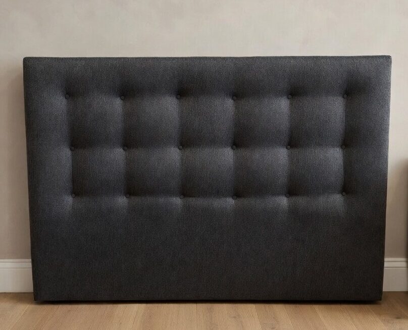 Add the luxury of an upholstered bedhead to your bedroom with this back buttoned detailed design. Australian made, here in Melbourne, with quality easy-care fabric, this bedhead is a statement piece! The lavish padding makes a great back-rest for reading. Simple to organise, as it is free-standing and easily placed at top of the bed without the need for further assembly.